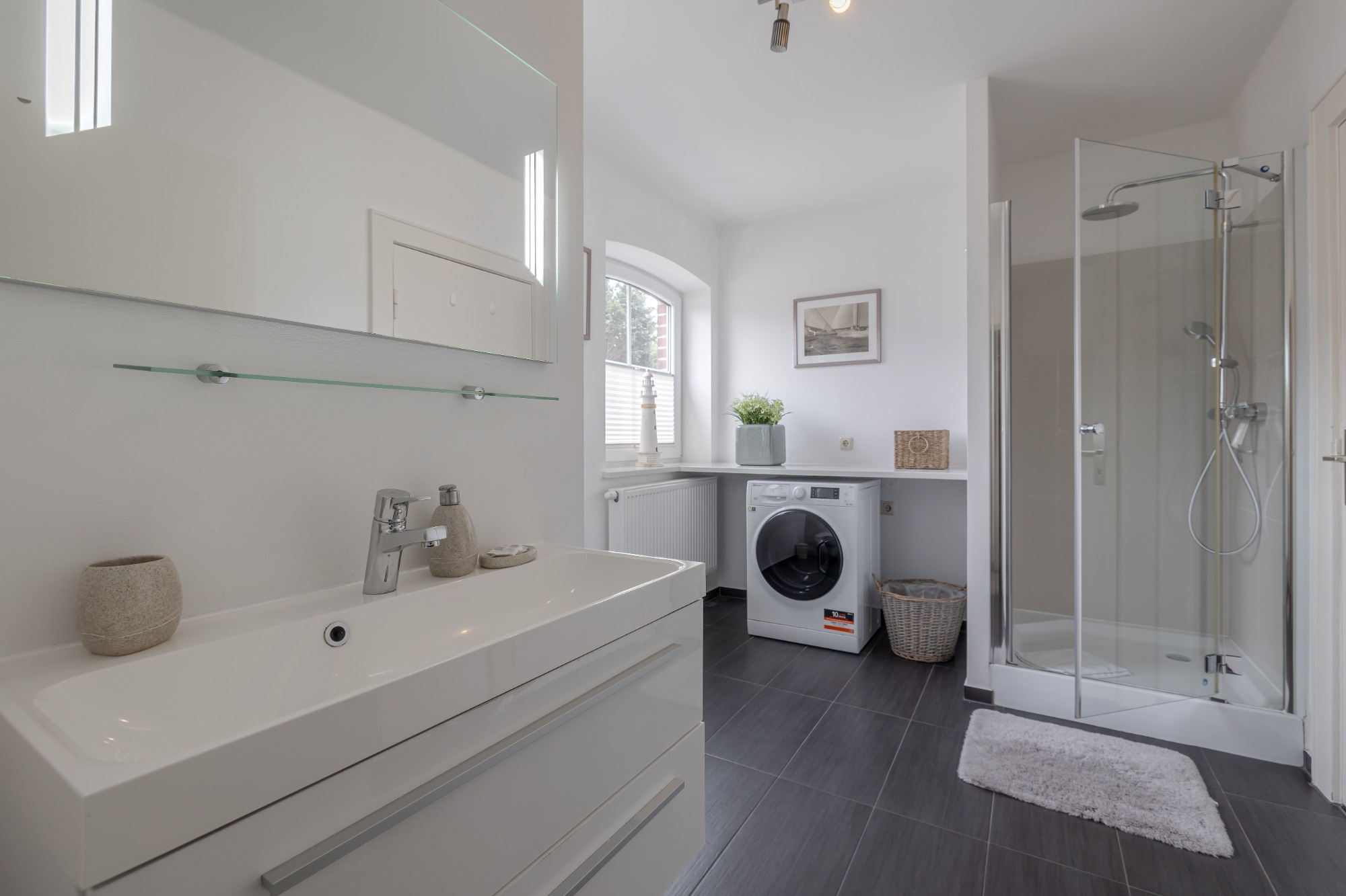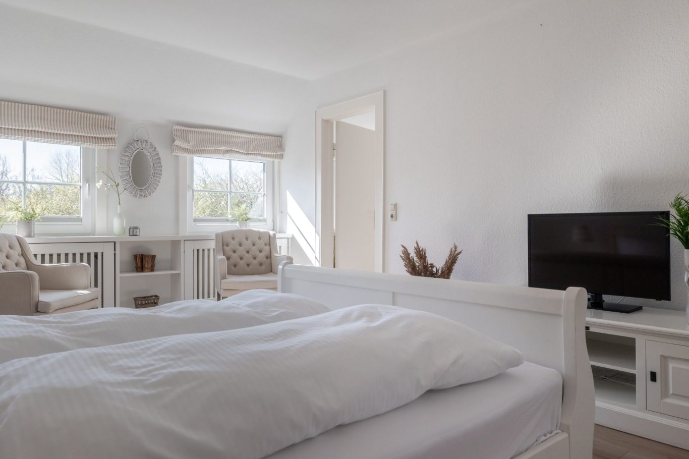 Vier große Schlafzimmer bieten ausreichend Platz für bis zu 7 Gäste, ideal für Familien oder Gruppen.